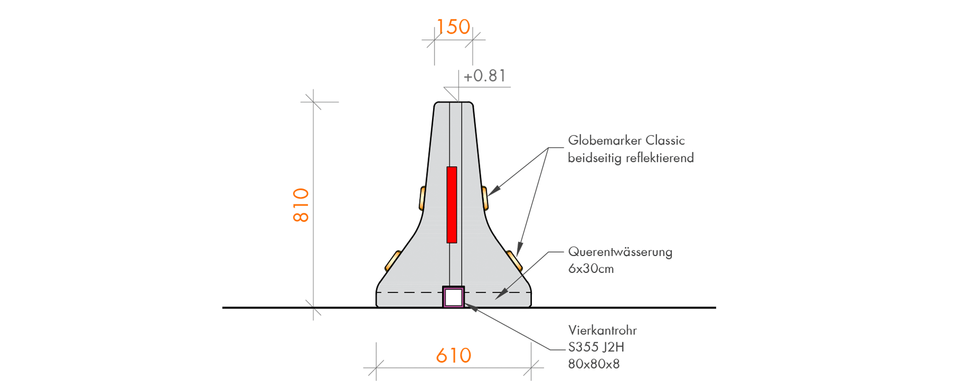 Transportable Schutzeinrichtung zur Baustellenabsicherung. Es werden die Einsatzbereiche A bis E abgedeckt.